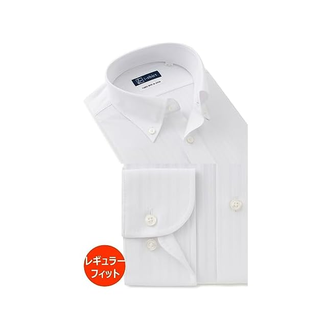 [アイシャツ] i-Shirt 完全ノーアイロン ストレッチ 超速乾 レギュラーフィット 長袖 アイシャツ ワイシャツ メンズ ホワイト 新レギュラーフィット 長袖ボタンダウン ストライプ M15121004001 首回り43cm×裄丈84cm