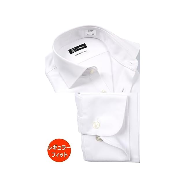 [アイシャツ] i-Shirt 完全ノーアイロン ストレッチ 超速乾 レギュラーフィット 長袖 アイシャツ ワイシャツ メンズ ホワイト 新レギュラーフィット 長袖セミワイド 白無地 M15123000801 首回り45cm×裄丈84cm
