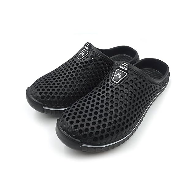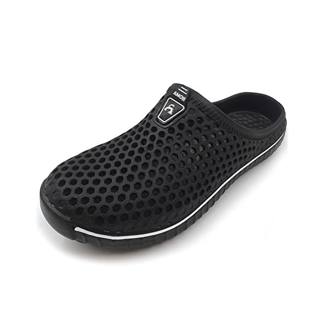 [アモジ] サンダル メンズ スリッパ 室内 レディース ルームシューズ めんず クロッグサンダル れでぃーす サボ ビジネス オフィスサンダル ビーチ ベランダ 室内履き さんだる すりっぱ 夏 夏用 通気 部屋 軽量 おしゃれ クッション 大きいサイズ 幅広 内履き 外履き 防水 事務所 屋外 玄関 ゴム つっかけ スリッポン AM1702 黒 ブラック 31.0cm