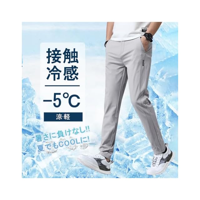 【接触冷感】冷感生地を採用して、肌と接触した瞬間に温度を下げるクール感があり、夏の常識を覆す!夏の蒸れに対応する男性用ジョガーパンツ。