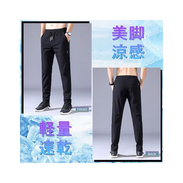 商品名:ズボン メンズ パンツ 接触冷感 夏服 ジョガーパンツ 涼しい 速乾 超ストレッチ スウェットパンツ 薄手 軽量 レギパン 美脚 イージーパンツ 部屋着 ボトムス アイスシルクパンツ 春 夏 (JP, 数字サイズ, 40, #01:ブラック(前閉じ調整紐))