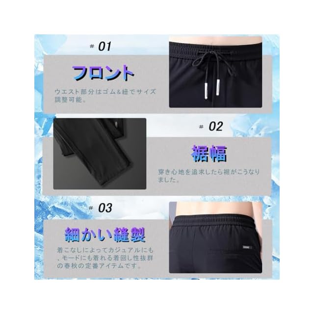 商品名:ズボン メンズ パンツ 接触冷感 夏服 ジョガーパンツ 涼しい 速乾 超ストレッチ スウェットパンツ 薄手 軽量 レギパン 美脚 イージーパンツ 部屋着 ボトムス アイスシルクパンツ 春 夏