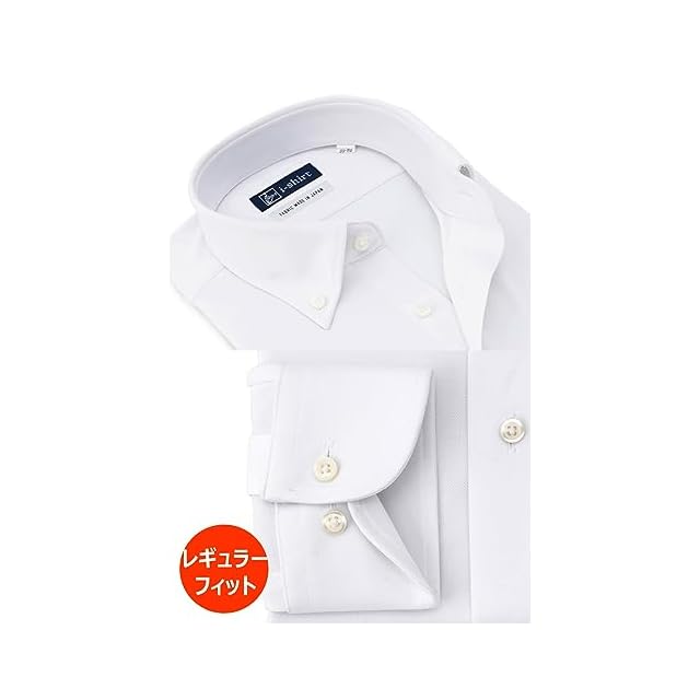 [アイシャツ] i-shirt 完全ノーアイロン ストレッチ 超速乾 レギュラーフィット 長袖 アイシャツ ワイシャツ メンズ ホワイト 無地 新レギュラーフィット 長袖ボタンダウン M15120003501 L84(首回り41cm裄丈84cm)