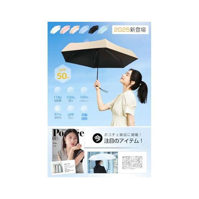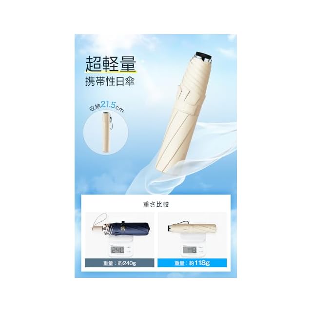 商品名:【2025新登場 & 118g軽量 & JIS認証】 日傘 UVカット 100%遮光 遮熱 折り畳み日傘 軽量 コンパクト 折りたたみ傘 兼用雨傘 紫外線遮断 耐風撥水 晴雨兼用 携帯便利 男女兼用 レディース メンズ キッズ 収納ポーチ付き (アプリコット)