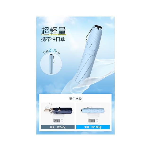 商品名:【2025新登場 & 118g軽量 & JIS認証】 日傘 UVカット 100%遮光 遮熱 折り畳み日傘 軽量 コンパクト 折りたたみ傘 兼用雨傘 紫外線遮断 耐風撥水 晴雨兼用 携帯便利 男女兼用 レディース メンズ キッズ 収納ポーチ付き (ブルー)
