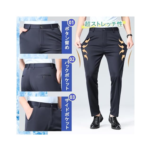[HMT] スラックス メンズ ズボン 夏服 冷感パンツ スーツパンツ 接触冷感 薄手 ロングパンツ メンズ ビジネス 仕事着 パンツ ノータック ストレッチ ウォッシャブル スリム 美脚 大きいサイズ 春 夏