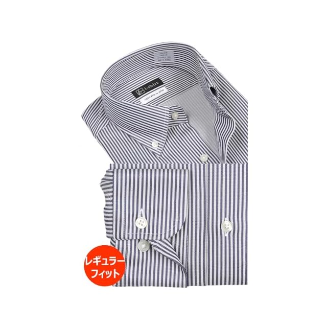 [アイシャツ] i-Shirt 完全ノーアイロン ストレッチ 超速乾 レギュラーフィット 長袖 アイシャツ ワイシャツ メンズ ネイビー 新レギュラーフィット 長袖ボタンダウン ロンドンストライプ M15123001188 首回り39cm×裄丈80cm