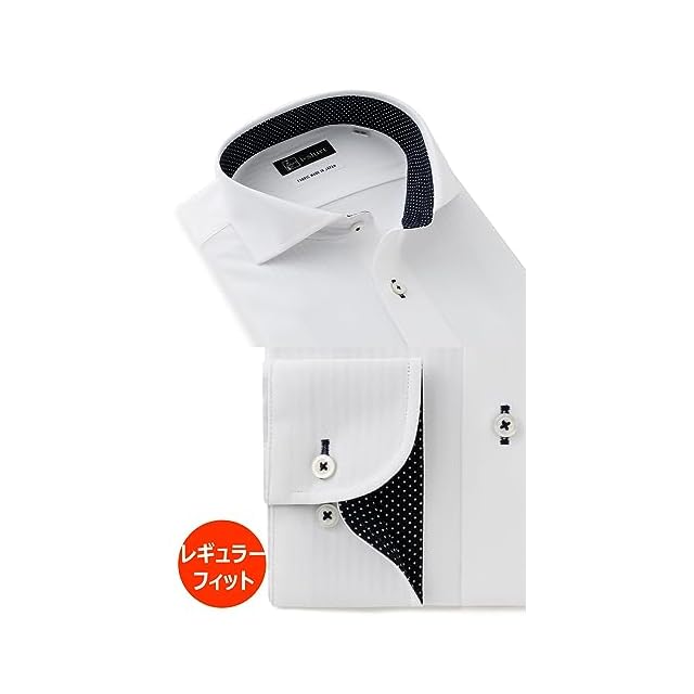[アイシャツ] i-Shirt 完全ノーアイロン ストレッチ 超速乾 レギュラーフィット 長袖 アイシャツ ワイシャツ メンズ ホワイト 新レギュラーフィット 長袖カッタウェイ ストライプ M15121003601 首回り39cm×裄丈80cm