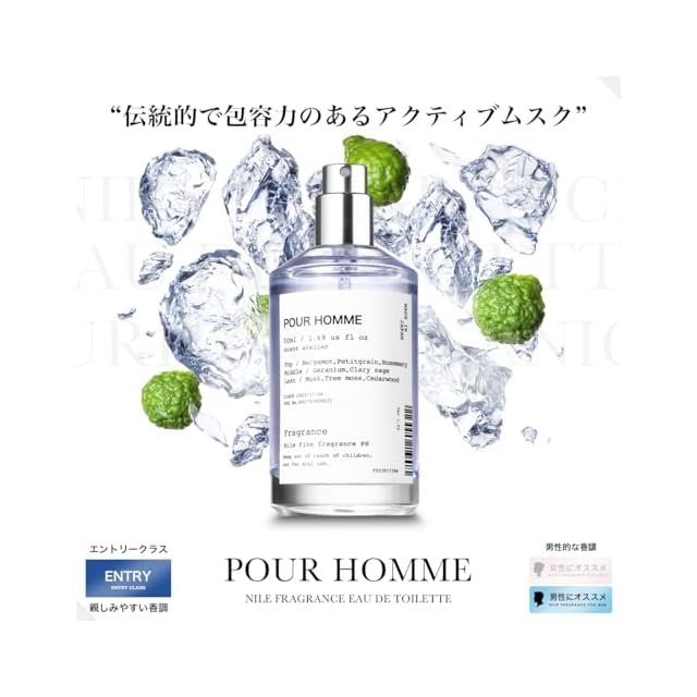 【エレガントさと清潔感のシトラスウッド】時代を超えて男性観の指針となる「プールオム」を、精悍さと伝統をテーマに、激情を秘めたシビアな香調へと再構築しました。岩場に打ち寄せる波しぶきのような鮮烈なシトラスから、甘く包容力のあるムスクのラストノートまで、アクティブな香調変化をお楽しみ頂けます。 【魅惑的な香りが本能を刺激する】ひとたび香りを纏えば、新たな世界への扉が開く。NILEフレグランスEDTは、記憶と香りが密接に関係していることに着目し、情景を呼び覚ます香りであることにこだわりました。 【調香師による深みのある多層的な香り】ハイエンドな調香師による深みのある多層的なハーモニーを表現。複雑な香りの組み合わせの中でも、キー素材を見失わない芯のある香調がユニークな世界観を描き出します。 【高賦香率の芳醇なフレグランス】香りの織りなすハーモニーの余韻を味わってもらうため賦香率の濃度を高めました。1つ1つのオードトワレに秘められたストーリーをお楽しみ下さい。 【使用方法】手首に1〜2プッシュし馴染ませた後、首、耳裏などにつけて下さい。香り方が足りない場合は、0.5プッシュずつ増やして調整して下さい。環境や個人差によって、香りが持続しない場合がございます。