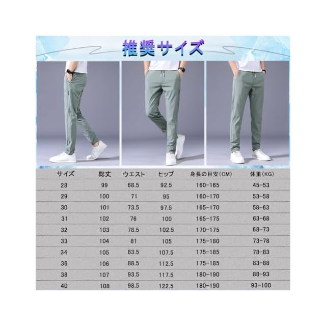 商品名:ズボン メンズ パンツ 接触冷感 夏服 ジョガーパンツ 涼しい 速乾 超ストレッチ スウェットパンツ 薄手 軽量 レギパン 美脚 イージーパンツ 部屋着 ボトムス アイスシルクパンツ 春 夏