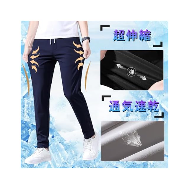 商品名:ズボン メンズ パンツ 接触冷感 夏服 ジョガーパンツ 涼しい 速乾 超ストレッチ スウェットパンツ 薄手 軽量 レギパン 美脚 イージーパンツ 部屋着 ボトムス アイスシルクパンツ 春 夏