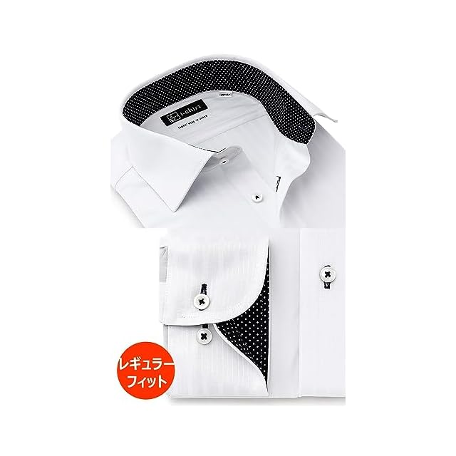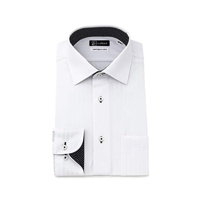 [アイシャツ] i-Shirt 完全ノーアイロン ストレッチ 超速乾 レギュラーフィット 長袖 アイシャツ ワイシャツ メンズ ホワイト 新レギュラーフィット 長袖セミワイドカラー 布帛ライク ストライプ M15120005501 首回り47cm×裄丈86cm