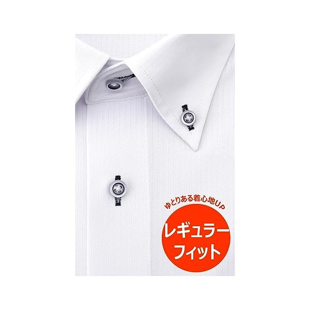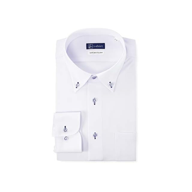 [アイシャツ] i-Shirt 完全ノーアイロン ストレッチ 超速乾 レギュラーフィット 長袖 アイシャツ ワイシャツ メンズ ホワイト 新レギュラーフィット 長袖ボタンダウン ドビーストライプ M15121001301 M82(首回り39cm×裄丈82cm)