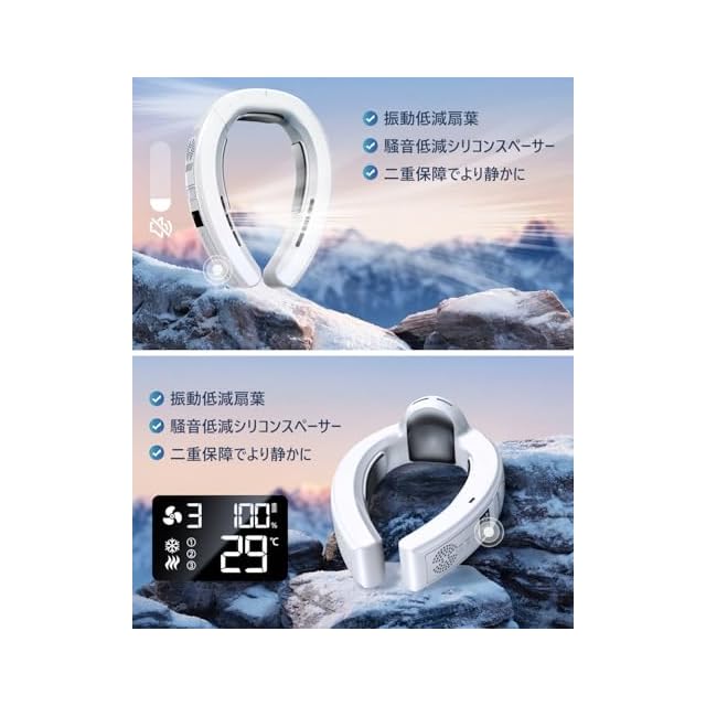 WANJIA ネッククーラー ネックファン 冷却プレート 【 2025新登場最強進化 半導体冷却プレート3枚&冷熱瞬間切&10000mAh大容量バッテリー 長航続時間】 首掛けクーラー 冬夏兼用 首掛け扇風機 360度立体冷風 ポータブル扇風機 軽量 羽根 風力調節 LEDディスプレイ付き 20dB静音 急速充電 熱中症対策 暑さ対策グッズ 釣りをする/通勤通学/冬に利用可能 (white)