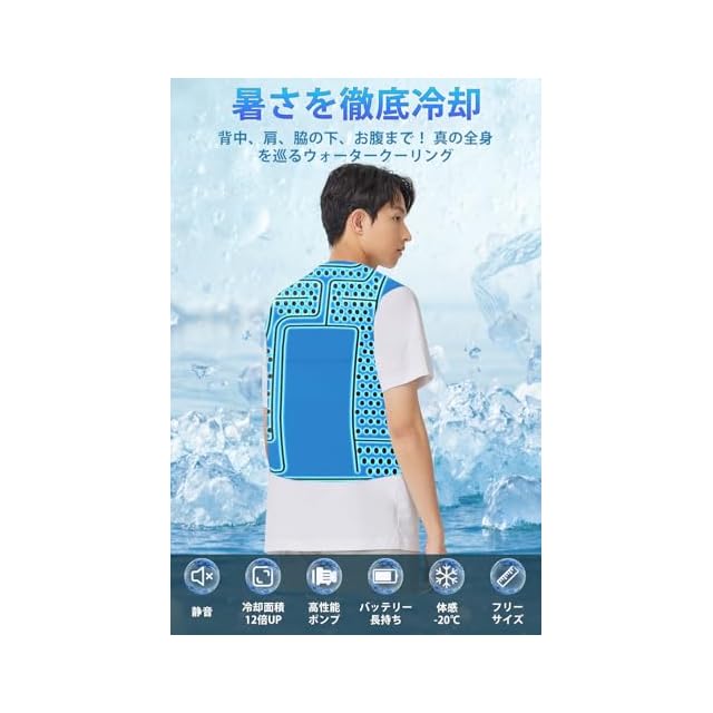 【熱中症対策の新次元】2400cm²超広域冷却システムが業界を革新!背中から腹部を包み込む立体水流ネットワークで-20℃の即効冷感を実現。保冷剤との併用で体感温度を最大20℃瞬時低下させながら、独自設計の循環経路が心臓周辺への負荷を軽減。厳格な耐久テストを通過した高強度メッシュ素材が動きを妨げず、炎天下の建設作業・高温倉庫内作業・激しいスポーツシーンでも持続的に深部体温をコントロール。4時間超の連続使用可能な冷却性能と身体へのフィット感を両立し、アウトドアから産業現場まであらゆる環境で「無理のない体温管理」を実現する次世代水冷作業着です。