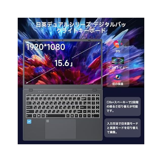 軽量で持ち運びに便利なデザイン:高密度組立技術、スリムなボディ、最薄部約10mm、重さ約1.6kg.15.6インチディスプレイを搭載し、表示面積が大きく、より多くの情報を同時に表示でき、操作性が向上します。1920*1080解像度のフルHD IPS液晶を搭載し、狭額ベゼルと高い画面対ボディ比で、広くクリアな視界を提供します。 IPS無光沢ディスプレイを搭載し、反射が少なく、目の疲れを軽減できます。 リチウムイオンバッテリーを内蔵し、最大6時間の連続再生が可能です。 省エネモード搭載のTYPE-C PD急速充電技術に対応し、高速回転時の熱を効果的に抑える高速静音冷却ファンを搭載し、勉強、仕事、オフィス、ギフトに最適です。