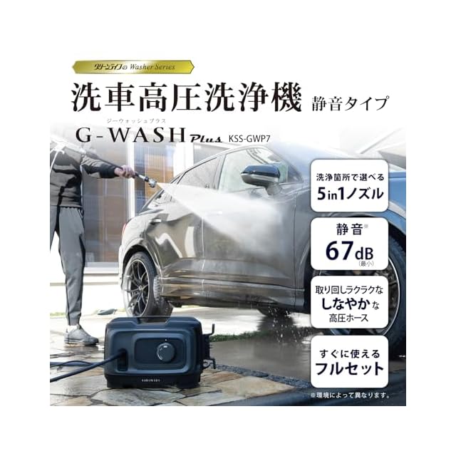 グリーンライフ 洗車高圧洗浄機 G-WASH Plus(ジーウォッシュプラス) 「BEAUTIFUL CARS(ビューティフルカーズ)監修 」10MPa 静音67dB 軽量 小型 コンパクト 多機能ノズル 角度調節 やわらかいホース 付属品充実 洗車 洗車特化 家庭用洗車機 洗浄 駐車場 庭 外壁 階段 苔 黄砂 泥 ベランダ 窓 網戸 ガラス 玄関 浴室 墓石掃除 掃除 KSS-GWP7