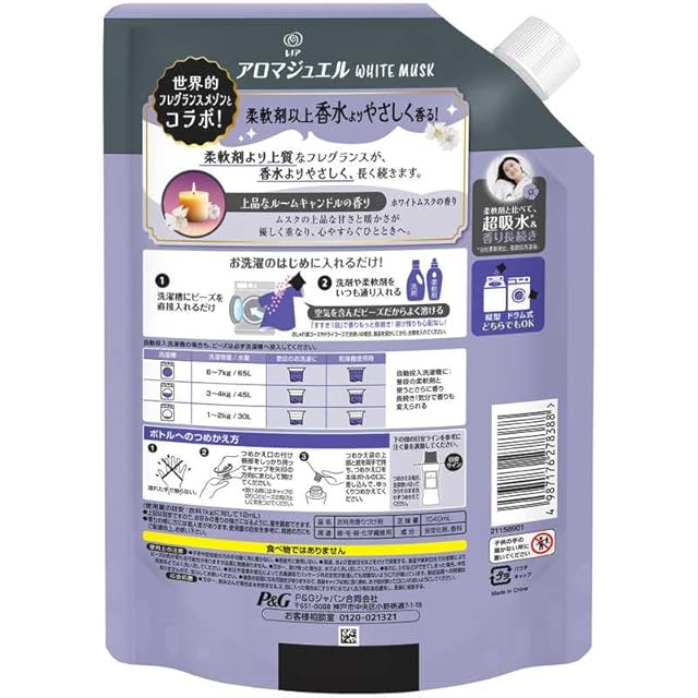 商品名:レノア アロマジュエル ホワイトムスクの香り WHITE MUSK 香り付けビーズ 詰め替え 1040ml 2袋セット おまけつき