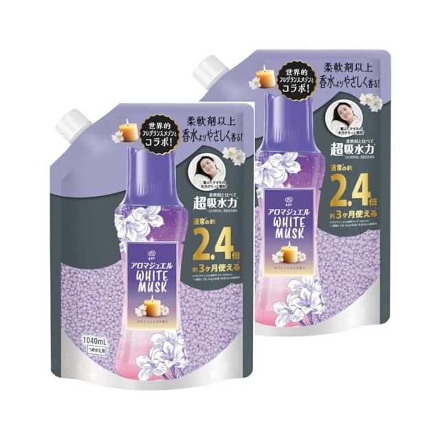 レノア アロマジュエル ホワイトムスクの香り WHITE MUSK 香り付けビーズ 詰め替え 1040ml 2袋セット おまけつき