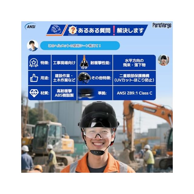 商品名:PerldVerge 建設用ヘルメット 安全ヘルメット 職業用ヘルメット 軽量 クリアバイザー付き 耐久性 作業用ヘルメット EN397規格準拠