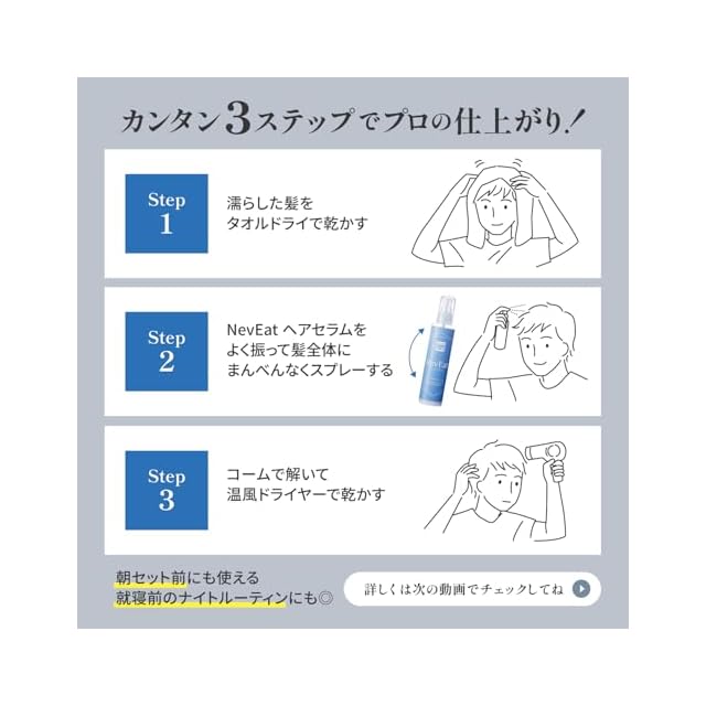 髪の毛をもっと素敵にしたい方へ、NevEatヘアセラムの登場です!このヘアセラムは、髪の毛をサラサラにしてくれる優れものです。乾燥やダメージでパサついた髪に潤いを与え、しなやかで輝く髪を実現します。 NevEatのヘアセラムは、髪を根本から補修し、保護してくれる特殊な成分が配合されています。さらに、軽いテクスチャーで、ベタつきや重さを感じさせません。髪に馴染みやすく、つけ心地もとても心地よいです。 また、このヘアセラムは独特な香りも特徴的です。さわやかなフローラルの香りが、使うたびにリフレッシュ感を与えてくれます。 髪の毛への愛とケアが詰まったNevEatヘアセラムで、思い通りのヘアスタイルを手に入れませんか?ぜひ、あなたの髪に素敵な変化をお届けします!