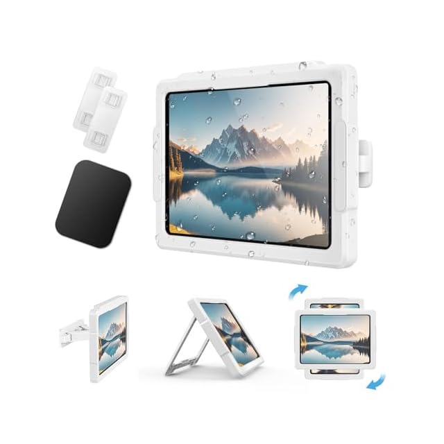 【2025版 大判強力マグネット】 MoKo タブレット防水ケース お風呂 マグネット&貼り付け&卓上スタンド 3Way設置方法 前後伸縮・角度調整可能 360°回転 11インチまでのタブレット/スマホ兼用 壁掛け 耐水/防霧 強力粘着 高感度 タッチパネル操作可能 動画鑑賞 iPad 第11/10世代/Air11/Mini7/6など対応 White