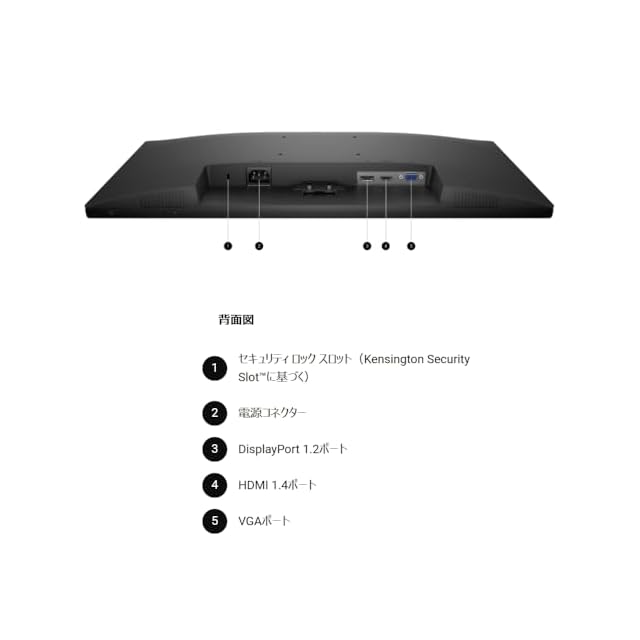 表示可能画面サイズ:23.8インチ、解像度:フルHD(1920x1080)、IPSパネル採用、応答速度:5ms、縦横比:16対9、視野角:水平/垂直共に178度、チルト角:-5~21度、リフレッシュレート:100Hz、明るさ:250cd/m2、I/F:DisplayPortx1、HDMIx1、VGAx1