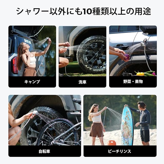 【幅広い用途】:IPX7防水規格に適合し、折りたたみ式フックを備えているため、キャンプ、洗車、ペットの掃除など、アウトドア活動に最適です。旅行、ハイキング、釣りなど、幅広い用途で使用でき、どこにいても信頼性の高いパフォーマンスを発揮します。