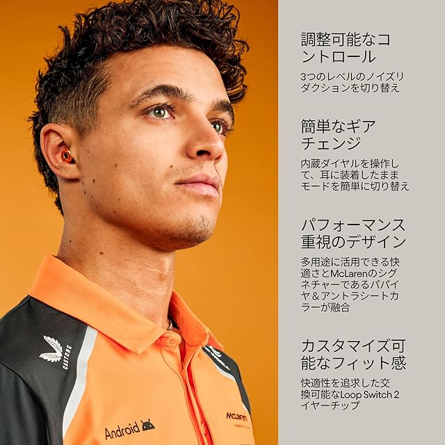 商品名:McLaren Formula 1 Team x Loop Switch 2 調節可能な耳栓 - 究極のコントロールを実現する3つのモード | 集中、モータースポーツ、移動などに適したフレキシブルなノイズリダクション | SNR値20~26dBのノイズリダクション