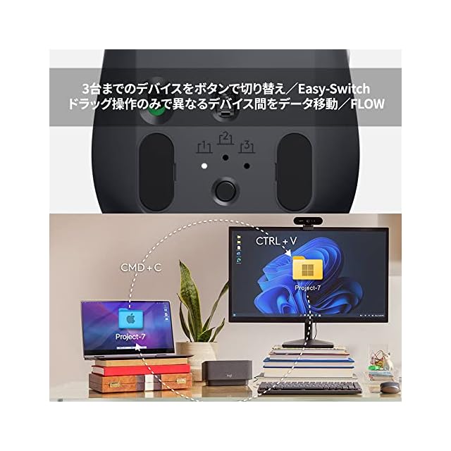 【マルチデバイス対応】裏面のボタンで、最大3台のデバイスへの接続を瞬時に切り替えられます。Windows・macOS・ChromeOS・Linux・Android対応。BluetoothまたはLogi Boltレシーバー(別売)に対応しています。