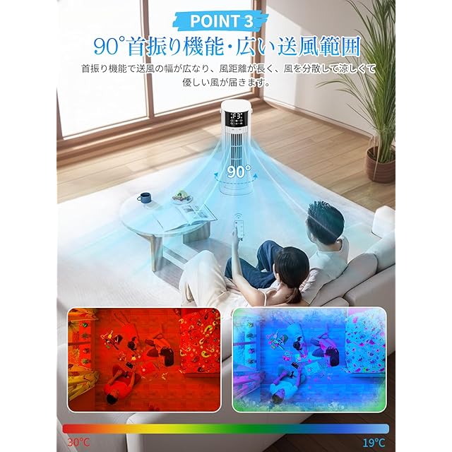商品名:冷風扇【2025夏新型・1台2役・加湿】タワーファン 扇風機 自動首振り 4段階風量 強力 人気 冷風機 上部給水 700ML大容量 静音 LEDディスプレイ リモコン付き 切タイマー 羽なし 縦型扇風機 卓上クーラーリビング ミニクーラー ミニエアコン 省エネ 空気清浄 子供部屋 キッチン オフィス 寝室適用 暑い 熱中症対策使い勝手 日本語取扱説明書付