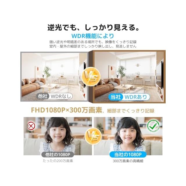 ✅【WDR逆光補正&300万画素で細部までクリアに記録】強い日差しや照明の逆光でも、もう“見えにくい”とは言わせません。Nexmora 室内カメラ はWDR機能を搭載し、明暗差が大きな環境下でもくっきりと映像を記録。FHD1080P × 300万画素の高精細カメラで、表情や物の動きまで細部まで再現。屋内で、重要な瞬間を確実に捉えます。他社製 ペット見守りカメラ 200万画素との違いを、実感してください。