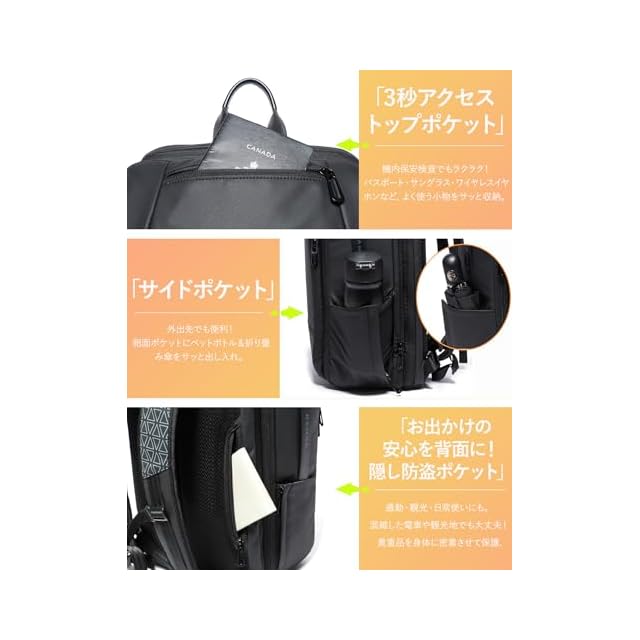 商品名:[Aerokyo] ビジネスリュック リュック メンズ 大容量 40L 旅行 機内持ち込み パソコン リュック 通勤 出張 A4 黒 拡張機能 撥水加工 USB 15.6インチ 17インチPC