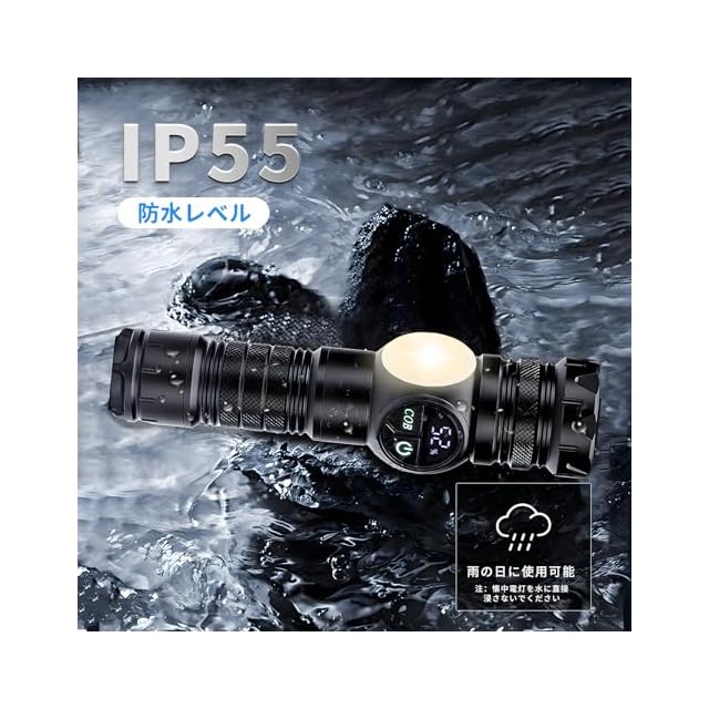 【 PSE認証 & 高性能放熱設計 & IPX55防水規格 】懐中電灯に付属するバッテリーはすべて公式のPSE認証を受けており、安全が保障されています。懐中電灯は、特別に設計された外殻の放熱構造と内部のスマート冷却チップの組み合わせにより、長時間の使用中に効果的な放熱と良好な温度管理を実現しています。懐中電灯の外殻は軍用アルミ合金素材で作られており、一定の衝撃に耐えることができますが、故意に乱暴に投げつけることは避けてください。IP55の防水規格は、暴雨や大雪などの極端な天候に耐えることができます(注意:水中に浸すことは避けてください)。日常使用、キャンプ、ハイキング、登山、自転車、散歩、救助活動、避難など、さまざまな場面に適しています。
