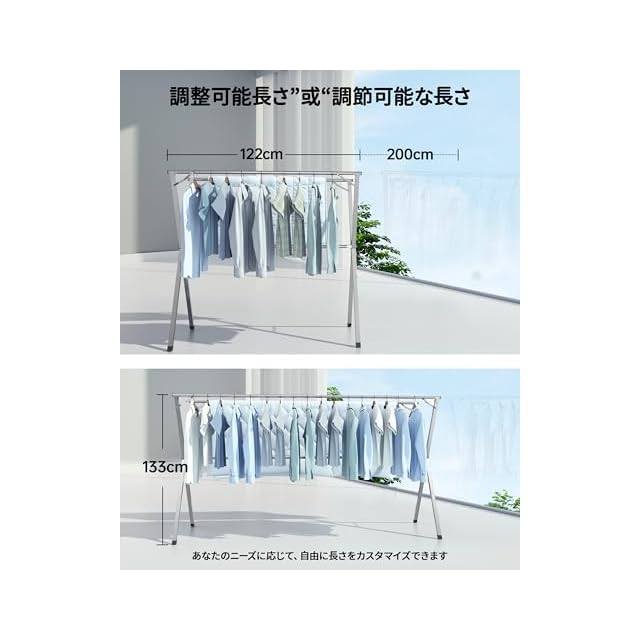 商品名:布団干しスタンド122-200cm折りたたみ洗濯物干し屋外厚みのあるステンレス鋼長さ調節可能な物干し省スペースの物干しスタンド防風フック20個付き (122-200cm)