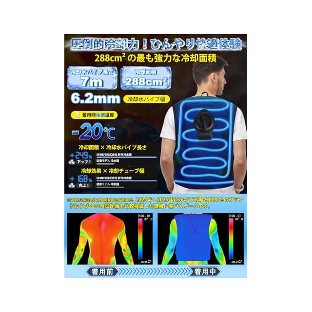 ❄【最強冷感!10秒で-20℃体感冷却|全身ひんやり】268cm²の広範囲冷却×7m超ロング水冷パイプ×6.2mm太チューブ搭載!SPMLFL冷却ベストは、着用後わずか10秒で冷感MAX!背中&胸部を同時に冷却し、猛暑下でも快適。一般的な冷却ベストの約10倍の冷却面積で、真夏の屋外作業・通勤・レジャーに最適です。