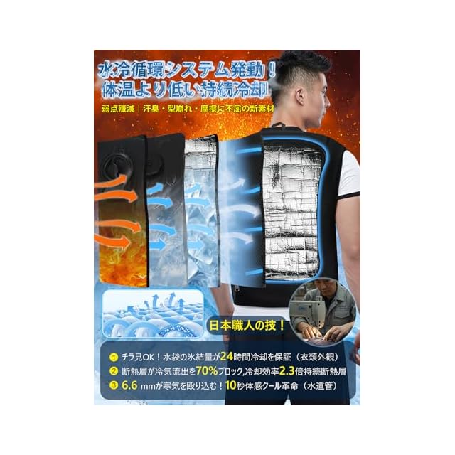 冷水服 【-20℃冷却效果・36時間運轉】 冷水ベスト 268cm² 冷却面 10000mAh バッテリー付き 男女兼用 冷水循環用 作業用ベスト