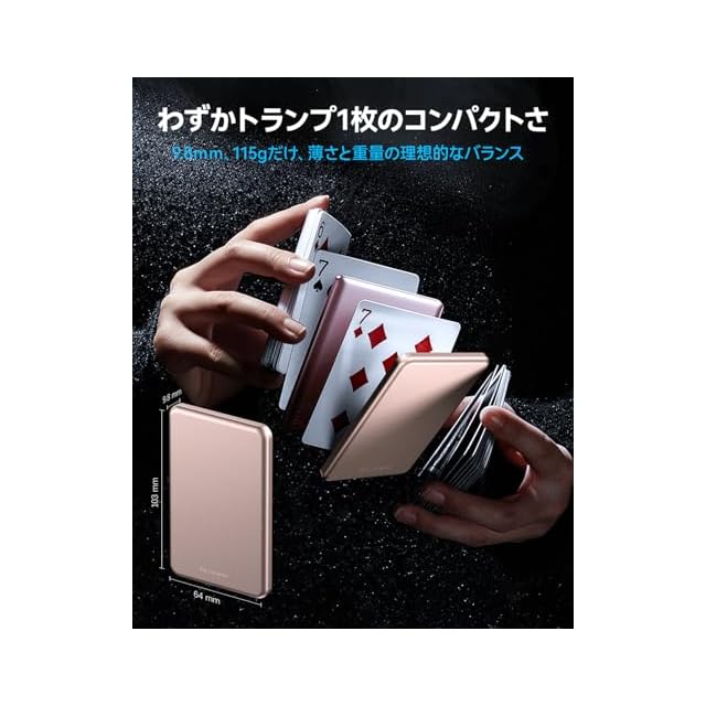【薄型・超軽量で持ち運びが簡単】このモバイルバッテリーは、薄型かつ超軽量な設計(9.8mm、115±5g)で、コンパクトなポケットサイズに仕上がっています。日常の通勤や海外旅行、出張など、あらゆるシーンで持ち運びが楽々です。機内持ち込み可で、旅の途中でも楽にご利用いただけます。そして、LED 表示灯で充電状況や残量が一目でわかり、便利です。