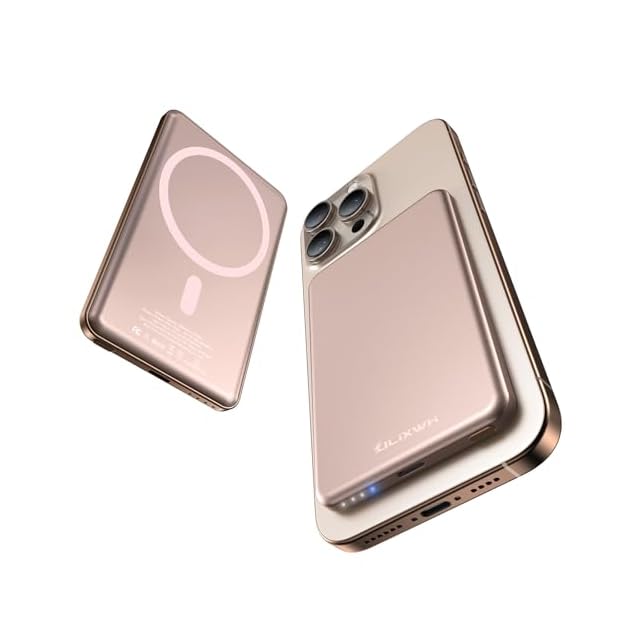 【業界初のチタン素材・MagSafe対応】モバイルバッテリー 軽量 小型 マグセーフ対応 5000mAh ワイヤレス マグネット式 18W急速充電 Type-C対応 FCC/PSE認証済み iPhone16/15/14/13/12シリーズ対応 パススルー機能 機内持ち込み可 MagS-1 ULiXWH(デザートゴールド)