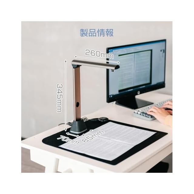 被写体を置き、上から撮影するだけのドキュメントスキャナです。大量の書類を高速データ化を実現します。a3ブックスキャナーとして、開いたA3サイズのページもそのままで撮影可能です。置くだけなので、分厚い本や立体物も撮影できます。作業効率アップに貢献します。ポータブルスキャナーは1500万の高画質で、文字がくっきり見やすい高精細スキャンも魅力です。(ソフトウェアの対応OS:Windows/Mac OSシステム)