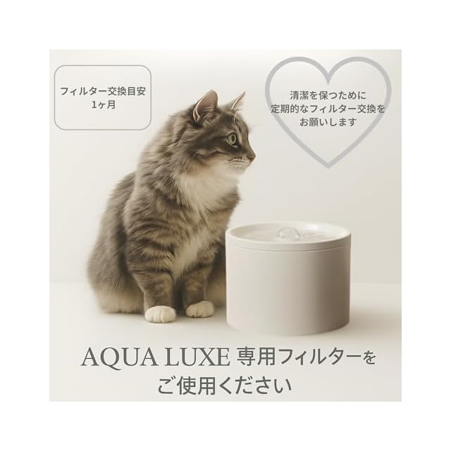 アクアリュクス(Aqua Luxe) ペット用 自動給水器 セラミック製 循環式 静音ポンプ 水飲み器 犬 猫 お手入れ簡単 高性能フィルター付き (ブラック, 1L)