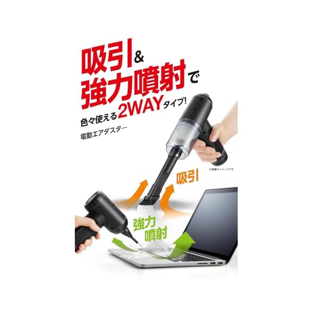 パソコンの画面やキーボードの隙間にあるホコリやゴミなどを強力な風で吹き飛ばし、パソコン周りをきれいに掃除できる電動エアダスターです。