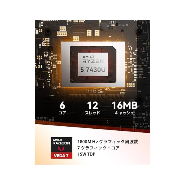 【コスパ最強のCPUが新登場】AMD Ryzen 5 7430U(6コア12スレッド、最大クロック4.3GHz)搭載して、統合されたAMD Radeon Vega 7 により、日常のあらゆるタスクをこれ一台で完結させます。 複数の作業を同時にこなすことはもちろん、高画質な動画視聴や、負荷の軽いゲームもサクサク快適に楽しめます。