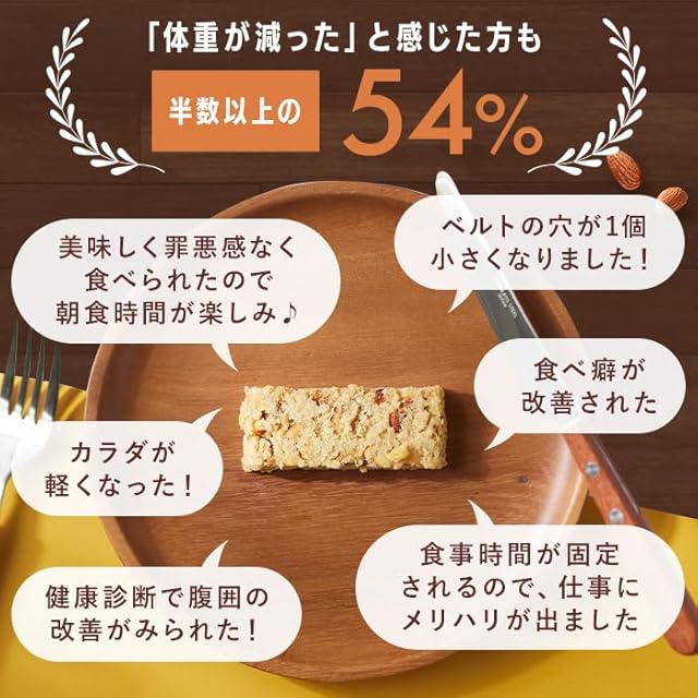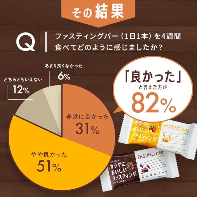 ・3食の食事のうち、いずれかの食事をファスティングバー1本に代えることで、手軽に16時間ファスティングを実施することができます。 ・食物繊維の豊富さと、ナッツの歯ごたえにより満足感があります。 ・ナッツを主体にはちみつでほのかな甘さをつけ、素材そのもののおいしさを引き出しました。 ・小麦粉不使用です。 ・100%植物由来の脂質により、ファスティングサポートPFCを実現しました。