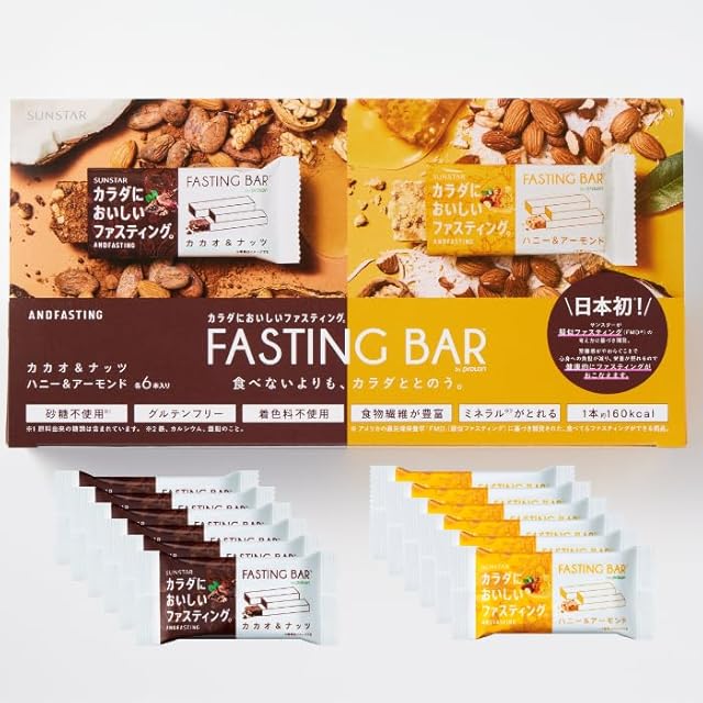 (サンスター) カラダにおいしいファスティング ファスティングバー たべるファスティング グルテンフリー 置き換えダイエット ファスティング カカオ&ナッツ6本 ハニー&アーモンド6本