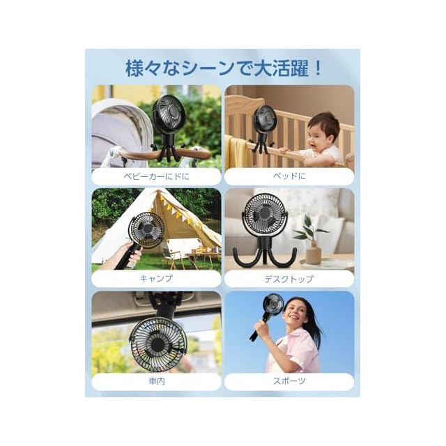 【1台4役&自由自在なアームでマルチに対応】くねくね曲がるアームがこのUSB扇風機の最大の魅力。卓上ファンとしてはもちろん、ベビーカーに巻きつけたり、天井から吊るしたり、スマホスタンド代わりに使ったりと、使い方は無限大。柔軟性と安定感の両立で、どんな角度・場所にもピタッと固定。リビング、寝室、キャンプ場、車中泊など、あらゆるシーンで活躍してくれます。