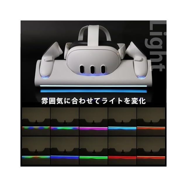商品名:【Meta Quest3専用】置くだけ VR充電スタンド3 ドック アクセサリー 卓上 ヘッドセット コントローラー ホルダー TypeC 急速充電 LEDライト付き