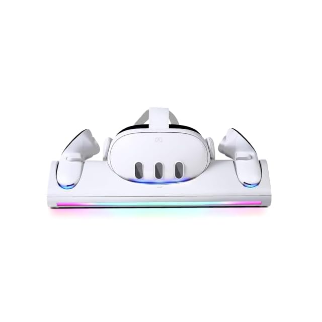 【Meta Quest3専用】置くだけ VR充電スタンド3 ドック アクセサリー 卓上 ヘッドセット コントローラー ホルダー TypeC 急速充電 LEDライト付き