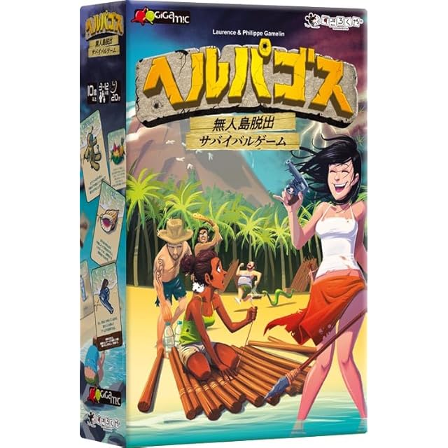 『ヘルパゴス』は、漂着した無人島から生還すべく、生き延びるための水や食料を集めたり、嵐が島を襲うまでに木材でいかだを作ろうと奮闘するのですが、徐々に枯渇していく資源にチームワークが乱されて、各自がどうにか自分だけは生き延びようと画策する、大爆笑のニセ協力型ゲームです。<br> <br> <b>★ここがおすすめ</b><br> はじめのうちは、みんなで資源を集めて無人島から生還しようと協力しあうはず、ですが、資源が枯渇するにつれて、チームワークが怪しくなり、メンバーの中で談合や意外な裏切りが発生するのが楽しいゲームです。難破船から入手できるさまざまな効能を持つアイテムが予想外の展開を巻き起こし、遊ぶたびに波乱万丈のドラマが生まれるでしょう。<br> <br> 大人数で気軽に楽しめる大人向けとして超おすすめです。<br> <br> 年齢 :10才〜大人<br> 人数 :3〜12人用<br> 時間 :20分<br> ルール難度 :わかりやすい<br> <br> 作者:Laurence Gamelin ロランス ガムラン 、Philippe Gamelin フィリップ ガムラン <br> イラスト:Jonathan Aucomte ジョナタン オコント <br> メーカー :Gigamic(ギガミック, フランス)<br> 初版発行年 :2017年<br> 国内版制作 :すごろくや(日本)<br> 販売元 :すごろくや(日本)<br> 国内版発行年 :2024年11月<br> 箱サイズ :115 × 180 × 42mm<br> 内容物 :ゲームボード 1枚, カード 91枚, 木製の玉 6個, 木製の資源マーカー 3個, 麻袋 1枚, 説明書 1部<br> 説明書言語 :日本語<br> 製造国 :中国<br> <br> モニターの発色の具合によって、実際のものと色が異なる場合がございます。<br>