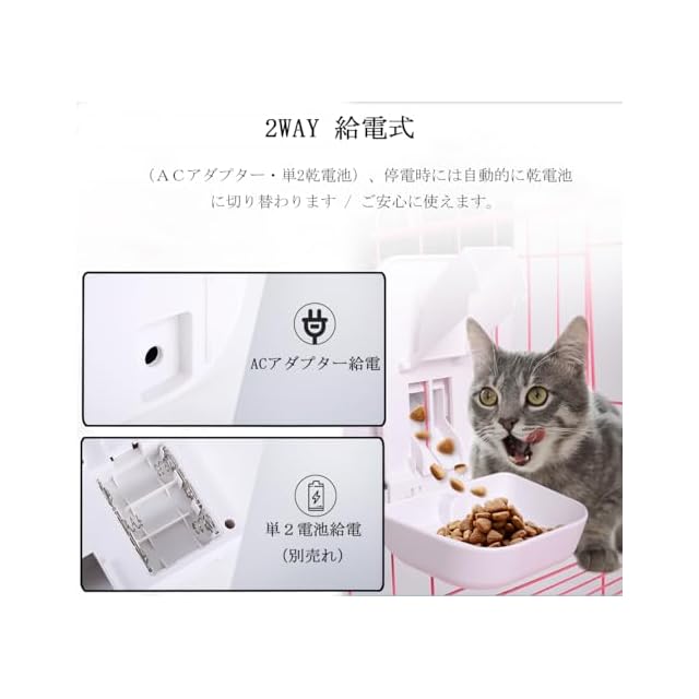 商品名:自動給餌器 ケージ掛け式 ペットフィーダー 小型犬 猫 ウサギ 2.3L容量 自動餌やり WIFIが必要 スマホで遠隔操作 定時定量 2WAY給電